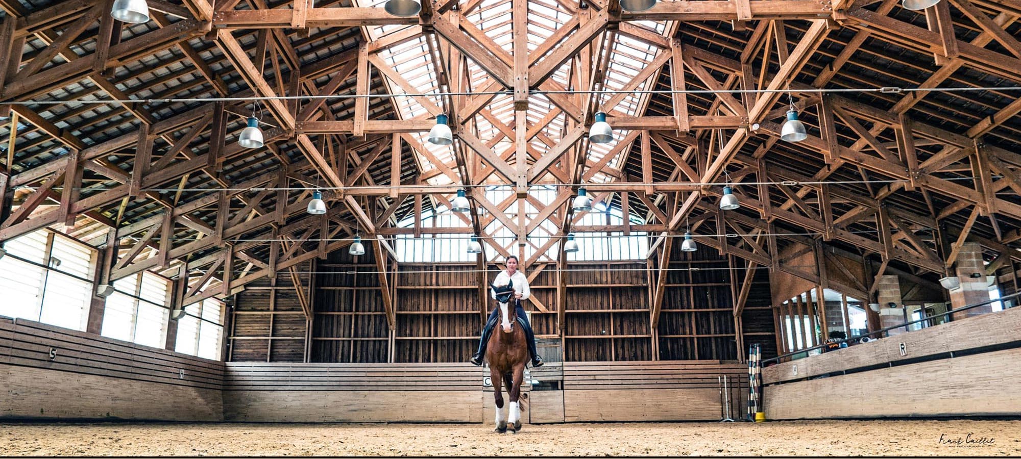 Manège couvert 20/40, il est équipé de miroirs et sonorisé, ainsi que de sa tribune. De la musique classique y est diffusée toutes la journée.